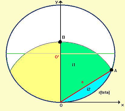 La difficulté consiste à déterminer alpha. Pour cela nous devons écrire l'équation du rayon qui décrit l'aire I2.