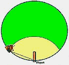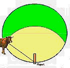 L'idéal est alors obtenu lorsque la longueur de la corde, calculée au mieux, permet à la vache de ne brouter que la portion de champ qui lui est attribuée.